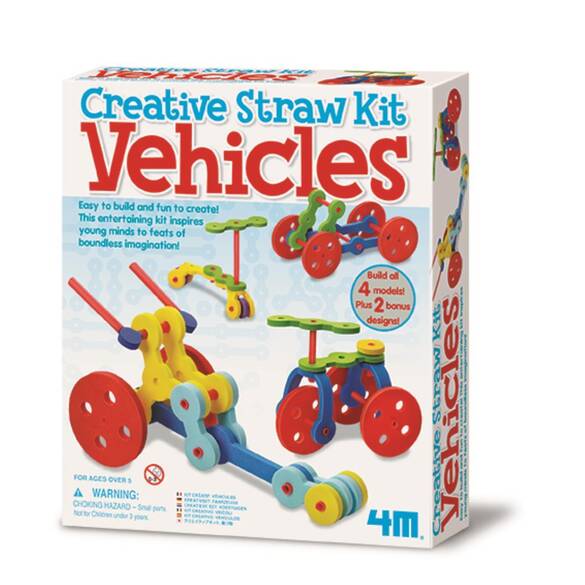 Creative Straw Kit - Vehicles Çok kolay yapacak ve yaparken çok eğleneceksiniz! Bu eğlence kiti genç dimağlara sınırsız hayal güçlerini ortaya çıkarmak için ilham verir! İçindekiler: Özel tasarlanmış renkli köpük parçaları, 2 pinli konektörler ve gözler, standart tüpler. 4 model yapmak için yeterlidir ve 2 bonus model fikri de içerir. Yaş Grubu : 8 yaş ve üzeri