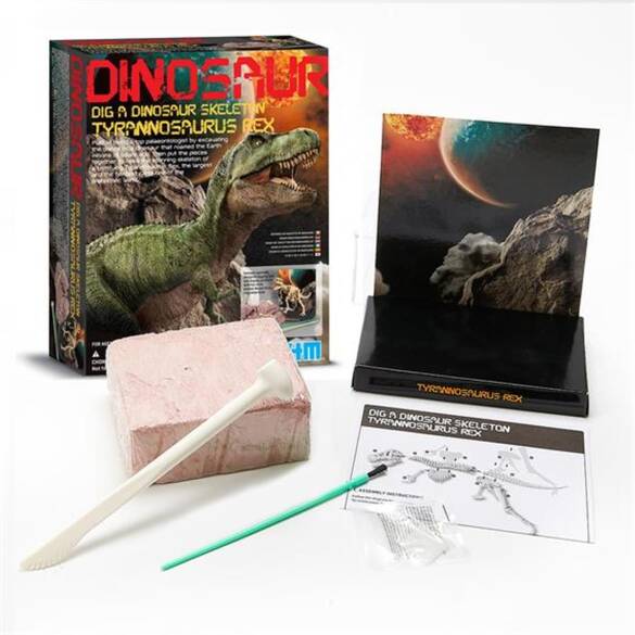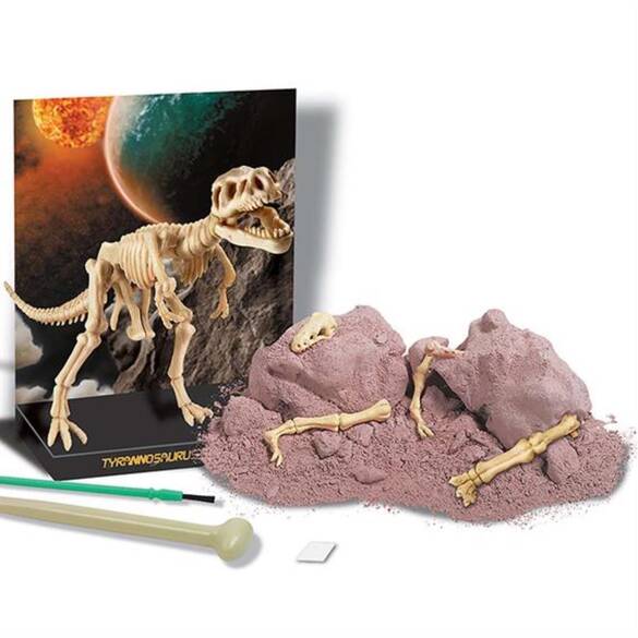 Milyonlarca yıl önce yaşamış dinozorların kemiklerini, günümüzdeki en önemli paleontologlar gibi çıkarmak ister misiniz? O zaman bu kit ile prehistorik çağlarda yaşamış en vahşi ve korkutucu et yiyen dinozorun iskeletini çıkartın. Yapıldıktan sonra 19 cm uzunluğundaki T-Rex’inizi kişisel müzenizde sergileyebilirsiniz.