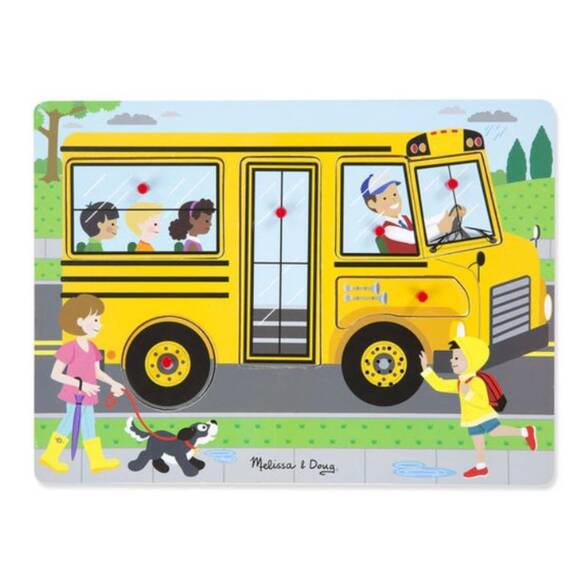 Sesli yapbozlar yeni serisiyle karşınızda! 6 adet yapboz parçası tablaya doğru bir şekilde yerleştirilir. Her bir parça kaldırıldığında İngilizce "The Wheels on the Bus" çocuk şarkısının ilgili kısmı dinlenir. Çocukların eşleştirme yeteneklerini geliştirir. Neden sonuç ilişkisini öğrenmelerini, İngilizce çocuk şarkılarını öğrenip birlikte söylemelerini sağlar. Bu üründe toksik olmayan boyalar kullanılmıştır, gerekli Avrupa Birliği ve ABD oyuncak güvenlik standartlarına uygundur.