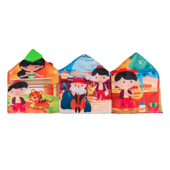 Resimlerle anlatımlı 6 sayfalo klasik masallar serisi. Kitabın renkli sayfaları ve çıkardığı hışırtılı sesler bebeklerin görsel ve işitsel duyu gelişimine katkı sağlar. Askısı sayesinde bebek arabasına, pusete ya da başka herhangi bir yere rahatça takılabilir. Asortili üründür. Seride Alaaddin'in Sihirli Lambası, Kırmızı Başlıklı Kız, Külkedisi ve Pamuk Prenses ve Yedi Cüceler masalları bulunmaktadır. Hangisini istediğinizi sipariş notu olarak belirtebilirsiniz, elimizde varsa istediğiniz yoksa diğerlerinden rastgele biri gelecektir. Boyutları: 22x68 cm