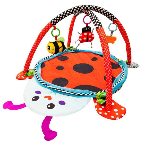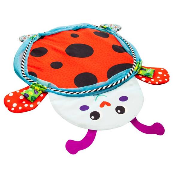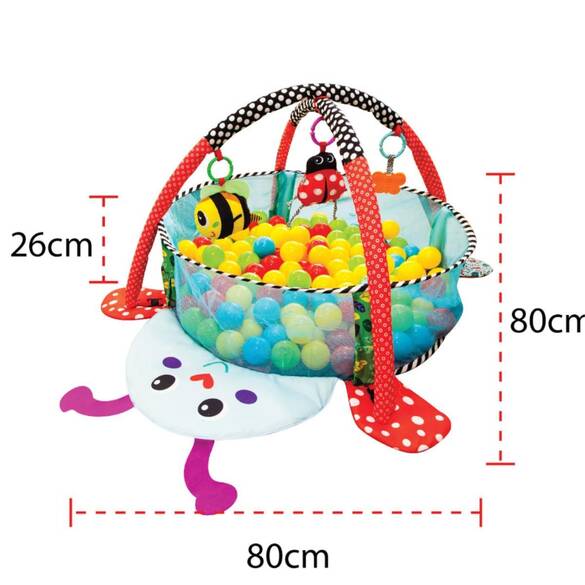 MOLIE Uğurböceği Temalı Top Havuzuna Dönüşen Aktivite Merkezi ve Oyun Halısı Yumuşak zemin sayesinde, bebeğinizi gönül rahatlığıyla yatırabilirsiniz. Halının üzerindeki çeşitli oyuncaklar ve figürler sevimli miniklerin görsel ve bilişsel zekasının gelişimine katkı sağlar. El ve göz koordinasyonunun gelişimini de destekler. Sahip olduğu özel yapısı sayesinde, bebeğinizin sağlığına zararlı hiçbir kimyasal madde barındırmaz. Kolay kurulumu ile dilediğiniz yere taşıyabilir ve bir kaç dakika içerisinde kullanıma hazır hale getirebilirsiniz. Top Havuzuna Dönüşen Aktiviteli Oyun Halısı; 4 adet askılı oyuncak ve 25 adet top kutuya dahildir. Askılı oyuncaklarda, 1 adet şekilli ayna, 1 adet çınçınlı oyuncak, 1 adet hışırtılı oyuncak ve 1 adet kelebek dişlik oyuncak vardır. Ürün Ölçüsü: 75 x 75 cm