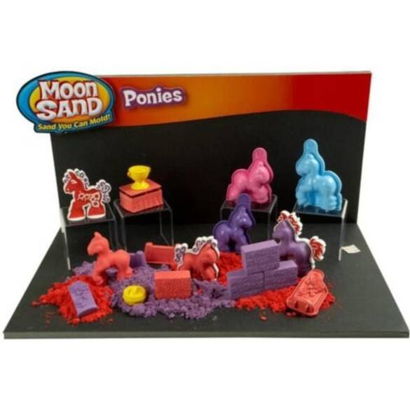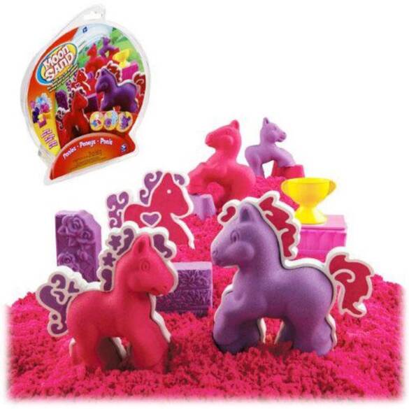 Sihirli kum MoonSand Pony seti, kutusunda gelen kalıpları ve çeşitli renklerdeki kurumayan kumu ile çocukların yeni gözdesi olacak. Çünkü bu ürünün en önemli farkı dünya üzerinde de ender bulunan kumu. Bu kum kalıplarda çok kolay şekil alıp yerleştirildiği gibi oyun sonrası kolayca dağıtılabilmekte ve açıkta kalsa bile hiç bir şekilde kuruyup sertleşmemektedir. MoonSand kumu suya da dayanıklıdır, suyla temas ettiğinde dağılmaz. MOONSAND Ponies’deki sevimli at Pony’le oynamak onu ödüllendirmek çok keyifli. İçindekiler 1 Adet Oyun matı 6 Adet pony at kalıbı 1 Adet saman balyası kalıbı 1 Adet kupa kalıbı 1 Adet kupa standı kalıbı 1 Adet tarak Mor kum 280 Gr. Kırmızı kum 280 Gr.