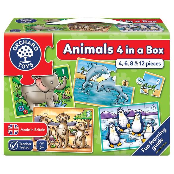 İngiltere’nin ünlü ORCHARD TOYS markasına ait ürünler büyük parçalı puzzle ve kutu oyunlardan oluşur. İngiltere’de ve dünyada birçok ödül kazanmış olan bir markadır. Tüm ürünler kalın, parlak, dayanıklı ve geri dönüşümlü kartondan Avrupa güvenlik standartlarına uygun olarak İngiltere’de üretilmektedir. Okul öncesi ve okul çağındaki çocuklar için üretilen puzzle ve kutu oyunlar sayesinde çocuklar hem eğlenirler hem de öğrenirler. Orchard Toys, özellikle kaliteli eğitim veren okullar ve evde çocukları ile verimli zaman geçirmeyi amaçlayan anne babalar tarafından tercih edilmektedir. İçerisinde 4 farklı hayvana ait 4 farklı 4, 6, 8 ve 12 parçalık sevimli yapboz. Çocuklarınıza hayvan sevgisi aşılayacak harika bir oyun!