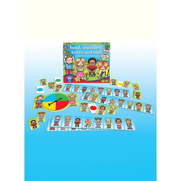 İngiltere’nin ünlü ORCHARD TOYS markasına ait ürünler büyük parçalı puzzle ve kutu oyunlardan oluşur. İngiltere’de ve dünyada birçok ödül kazanmış olan bir markadır. Tüm ürünler kalın, parlak, dayanıklı ve geri dönüşümlü kartondan Avrupa güvenlik standartlarına uygun olarak İngiltere’de üretilmektedir. Okul öncesi ve okul çağındaki çocuklar için üretilen puzzle ve kutu oyunlar sayesinde çocuklar hem eğlenirler hem de öğrenirler. Orchard Toys, özellikle kaliteli eğitim veren okullar ve evde çocukları ile verimli zaman geçirmeyi amaçlayan anne babalar tarafından tercih edilmektedir. Baş, Omuzlar, Dizler ve Ayak Parmakları Oyunu. Bu çok ünlü çocuk şarkısı ile eğlenceyi doruklarında yaşayın! Oyuna yaşı en küçük olan oyuncu çarkıfeleği çevirerek ve çarkıfelekte görünen renkle aynı renkte bir kart seçerek başlar. Oyuncu kartı çevirip bakmadan önce, kendi vücudunda göstererek ve adını söyleyerek kartın altta kalan yüzünde vücudun hangi parçası olduğunu tahmin etmeye çalışır. Oyuncu doğru tahmin ederse bu kartı kendi oyun tahtası üzerinde ait olduğu yere yerleştirir. Oyuncu doğru tahmin edemezse kartı renkli tarafı ste gelecek şekilde yerine geri koyar. Joker kartı (vücudun tüm parçalarını gösteren) çekilirse tüm oyuncular "Baş, Omuzlar, Dizler ve Ayak Parmakları" şarkısını eksiksiz söyler ve oyuncu bu kartı kendi oyun tahtasında vücudun tahmin ederken söylediği parçasının üzerine yerleştirir. Oyunculardan birisi tamamlaması gereken en son kartı da kendi oyun tahtasına aldıktan sonra tüm oyuncular "Baş, Omuzlar, Dizler ve Ayak Parmakları" şarkısını söyler ve o oyuncu oyunu kazanır.