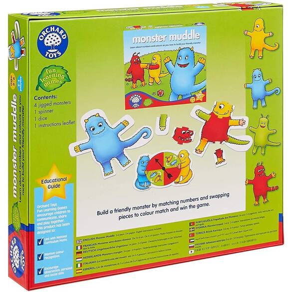 İngiltere’nin ünlü ORCHARD TOYS markasına ait ürünler büyük parçalı puzzle ve kutu oyunlardan oluşur. İngiltere’de ve dünyada birçok ödül kazanmış olan bir markadır. Tüm ürünler kalın, parlak, dayanıklı ve geri dönüşümlü kartondan Avrupa güvenlik standartlarına uygun olarak İngiltere’de üretilmektedir. Okul öncesi ve okul çağındaki çocuklar için üretilen puzzle ve kutu oyunlar sayesinde çocuklar hem eğlenirler hem de öğrenirler. Orchard Toys, özellikle kaliteli eğitim veren okullar ve evde çocukları ile verimli zaman geçirmeyi amaçlayan anne babalar tarafından tercih edilmektedir. Orchard ile sevimli canavarlarınızı yapın! İçinden çıkan çarkı çevirin ve oka göre çılgın sevimli canavarlarınızı tasarlayın!