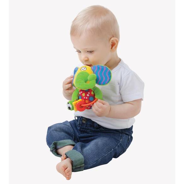 Bu yaramaz görünümlü oyun arkadaşı, diş etleri ağrıyan ve küçük keşif parmakları olan bebekler için mükemmel olan üç adet dokulu boncuk sunar! Bu süper yumuşak ve sevimli fil, görsel duyuları uyarmak için parlak renkli desenlerle birlikte gelir ve bebeğiniz için mükemmel bir oyun arkadaşıdır!