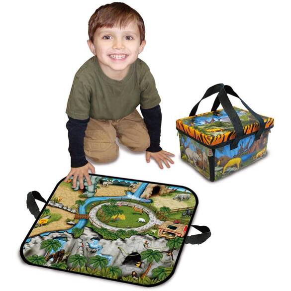 Kullanışlı, sağlam, içerisine birçok oyuncağı koyabileceğiniz bir çanta düşünün. Ama sadece çanta değil aynı zamanda mükemmel bir oyun minderi olsun. ZipBin Mini Hayvanat Bahçesi Oyun Seti küçüktür, taşınabilir, içinde birçok oyuncak saklanabilir. Hayvanat bahçesi sahneleri ve hayvanları ile süslenmiştir. Seyahat ederken bile yanınızda en sevdiğiniz hayvanları taşımanız için mükemmel bir yoldur. Buradan kaçabilecek herhangi bir hayvan hakkında endişelenmenize gerek yok. Açıldığı zaman keyifle oynayacağınız bir hayvan yaşam alanına dönüşür. Oyun bitip de fermuarı kapadığınızda oyun minderi, bir oyuncak çantasına dönüşür.