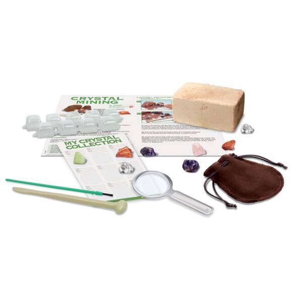 Bu eğitici kit, genç maden avcılarının, kitin kazma aletini kullanarak sert bir alçı "kayadan" hazineleri ortaya çıkarmak için kendi kristallerini kazmalarına olanak tanır.