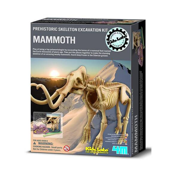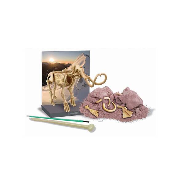 İnanılmaz çok güçlü dişlere sahip olan Mammothlar dişlerini taş gibi sert maddeleri parçalamada, ağırlık taşımada, koparmada ve daha birçok güç isteyen işlerce rahatça kullanmışlardır. 1977 yılında Sibirya'da madenciler 40000 yıl önce 6 aylık bir yavruyken ölmüş Mammoth'u vücut yapısı bozulmamış halde bulmuşlardır. 1900 da ise arkeologlar tarafından bulunan Mammoth'un midesinde 14 kg sindirilmemiş besin bulunmuştur. Şaşırmamak mümkün mü?Dinozor kemikleri gömülü olan alçı bir kalıp, eklem yerlerini kıvırmak için yumuşak balmumu, özel olarak tasarlanmış kazı aleti, fırça, üzerinde eğlenceli bilgiler yazılı tarih öncesi manzara fonu içerir.