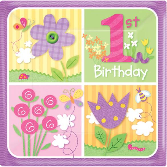 AMSCAN - İlk Yaşım Kız - 8'li Küçük Tabak