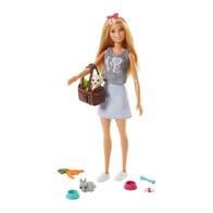 Barbie ve Sevimli Hayvan Arkadaşları ile Barbie’nin eğlence dolu dünyasına sizde dahil olun! Barbie hayvanları ve onlarla ilgilenmeyi çok seviyor. Köpeği ve sevimli tavşanı olan Barbie’ye onlara bakması için sizde yardım edin. Kızlar Barbie ve sevimli hayvan dostlarını alıp onlarla birlikte hayal güçlerindeki eğlenceli oyunları canlandırmayı çok sevecek! Barbie mavi-beyaz çizgili eteği, ‘Love’ yazılı tişörtü, beyaz spor ayakkabısı ve şıklığını tamamlayan pembe saç bandı ile çok sevimli gözükmektedir.