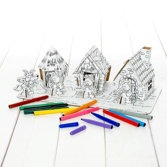 CALAFANT - Boyamalı Karton Set - 3 Küçük Domuzcuk