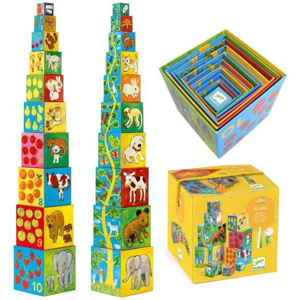 İç içe geçebilen 10 adet doğa ve hayvan temalı küp ile kulenizi oluşturun!