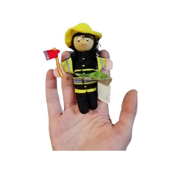 FIESTA - Wooden Head Finger Puppet - Firefighter