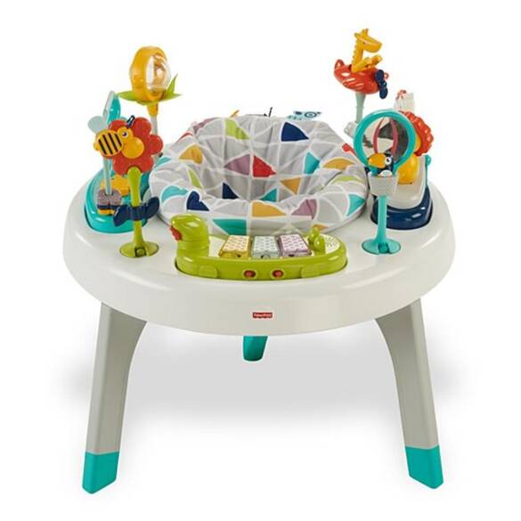 Bebeğinizle birlikte büyüyen 360 derecelik aktivitelere sahip, oyun dolu bir aktivite merkezi!Ufaklığınız, onunla birlikte "büyüyen", bu safari temalı 2'si 1 arada oyuncakla bolca eğlenceli vakit geçirecek! İlk kullanım modunda bebeğiniz aktivite merkezinin ortasında bulunan koltuğun içinde oturur. Bu koltuk 360 derece döner, böylece bebeğiniz koltuk etrafındaki aktivite oyuncaklarıyla oynayabilir. Çocuğunuz ayakta durabildiğinde ise, koltuğu çıkarıp rampa oyuncağını takarak, bir aktivite masasına dönüştürebilirsiniz! Eğlenceli melodiler, sesler ve ışıklar, bebeğinizin hareketlerini ödüllendirir. Gelişim ve oyun bir arada™ Kaba Motor Becerileri: Masa üzerindeki oyuncaklar ile oynamak, hem otururken hem de ayakta dururken kaba motor becerilerinin gelişmesine yardımcı olur! Duyusal Gelişim: Parlak renkler, çeşitli sesler ve dokular bebeğinizin görsel, işitsel ve dokunma duyularını uyarmaya yardımcı olur. Merak: Bebeğiniz çeşitli aktiviteleri keşfederken, neden-sonuç ilişkisiyle tanışır. Bu ürün yalnızca başını yardım almadan dik tutabilen ve üründen dışarı çıkamayacak çocuklar için uygundur.