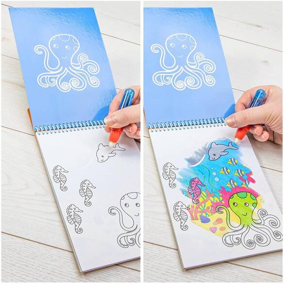 Suyla boyanabilen bu boyama kitapları çok heyecan verici! İçinden çıkan kalemi suyla doldurun ve sayfaları boyayın, sayfanın kurumasını bekledikten sonra tekrar tekrar boyayabilirsiniz. Her kitap tekrar boyanabilen 6 boyama sayfası ve 1 doldurulabilir su kalemi içerir. Bu üründe toksik olmayan boyalar kullanılmıştır. Gerekli Avrupa Birliği ve ABD oyuncak güvenlik standartlarına uygundur. Çocukların el becerilerinin gelişmesine yardımcı olur.