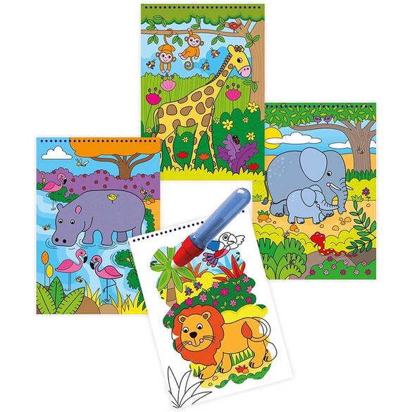 Suyla boyanabilen bu boyama kitapları çok heyecan verici! İçinden çıkan kalemi suyla doldurun ve sayfaları boyayın, sayfanın kurumasını bekledikten sonra tekrar tekrar boyayabilirsiniz. Her kitap tekrar boyanabilen 6 boyama sayfası ve 1 doldurulabilir su kalemi içerir. Bu üründe toksik olmayan boyalar kullanılmıştır. Gerekli Avrupa Birliği ve ABD oyuncak güvenlik standartlarına uygundur. Çocukların el becerilerinin gelişmesine yardımcı olur.