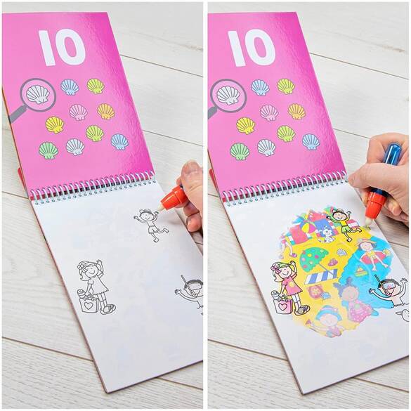 Suyla boyanabilen bu boyama kitapları çok heyecan verici! İçinden çıkan kalemi suyla doldurun ve sayfaları boyayın, sayfanın kurumasını bekledikten sonra tekrar tekrar boyayabilirsiniz. Her kitap tekrar boyanabilen 6 boyama sayfası ve 1 doldurulabilir su kalemi içerir. Bu üründe toksik olmayan boyalar kullanılmıştır. Gerekli Avrupa Birliği ve ABD oyuncak güvenlik standartlarına uygundur. Çocukların el becerilerinin gelişmesine yardımcı olur.