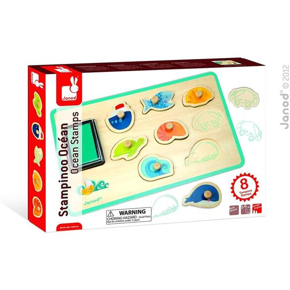 JANOD - 8 Parça Ahşap Damga Yapboz - Okyanus
