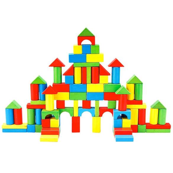 9 farklı şekilde ve 4 farklı renkte 100 adet ahşap bloktan oluşmaktadır. Çocuklar ahşap bloklarla yepyeni şeyler yaparken renk ve şekilleri öğrenebilirler, ince motor becerileri gelişir ve okul öncesi matematik becerilerini geliştirebilirler.