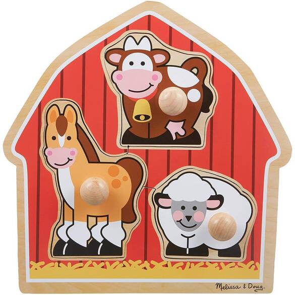 Ahşap yapboz serisinin en iri çivili üyesidir. Çiftlik hayvanlarından oluşan harika bir ilk yapboz! Yapboz parçaları üzerindeki iri çiviler küçük ellerin tutmasını kolaylaştırır. Ekstra kalın parçalar ve tabla üzerindeki şekiller yerleştirmede kolaylık sağlar. Çocuklar bu oyunla: Çocukların el göz koordinasyonunu geliştirmek ve algılama yeteneklerini teşvik etmek için fırsat sunar. Bu üründe toksik olmayan boyalar kullanılmıştır, gerekli Avrupa Birliği ve ABD oyuncak güvenlik standartlarına uygundur.