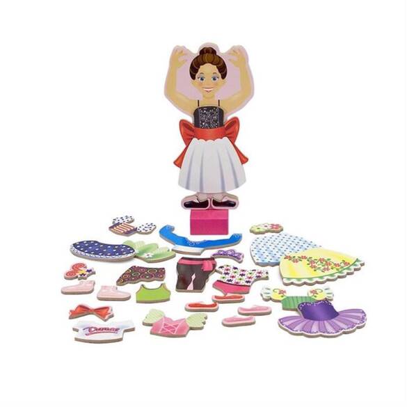 Bu sette mıknatıs ve ahşabın yaratıcı birlikteliği çok eğlendiricidir. Ahşap balerin ayakkabısından kıyafetine çeşit çeşit giydirilirken çok eğlenilecek ve zamanın nasıl geçtiği anlaşılmayacaktır. Üstelik kıyafetler mıknatıslı olduğu için çocuğun üzerinden düşmeyecektir. Kutu içerisinde 27 parça kıyafet aksesuar ve balerini ayakta tutmaya yarayan ayaklık bulunmaktadır. Bu üründe toksik olmayan boyalar kullanılmıştır gerekli Avrupa Birliği ve ABD oyuncak güvenlik standartlarına uygundur.