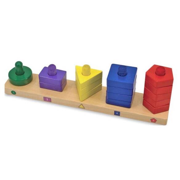 15 adet ahşap parça ahşap tahtaya yerleştirilirken şekil, renk ve sayıların öğrenilmesinde yardımcı olur. Çocukların eşleştirme ve sayma becerilerini geliştirirken eğlenceli zaman geçirmelerini sağlar. Bu üründe toksik olmayan boyalar kullanılmıştır, gerekli Avrupa Birliği ve ABD oyuncak güvenlik standartlarına uygundur.