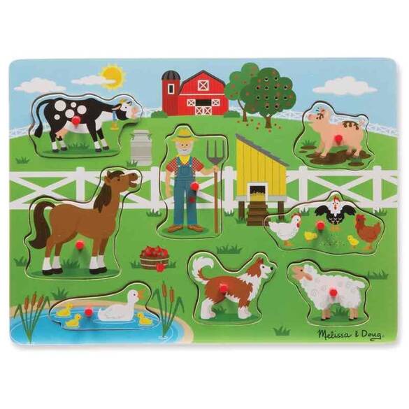 Sesli yapbozlar yeni serisiyle karşınızda! 8 adet yapboz parçası tablaya doğru bir şekilde yerleştirilir. Her bir parça kaldırıldığında İngilizce "Old Mc Donald's Farm" çocuk şarkısının ilgili kısmı dinlenir. Çocukların eşleştirme yeteneklerini geliştirir. Neden sonuç ilişkisini öğrenmelerini, İngilizce çocuk şarkılarını öğrenip birlikte söylemelerini sağlar. Bu üründe toksik olmayan boyalar kullanılmıştır, gerekli Avrupa Birliği ve ABD oyuncak güvenlik standartlarına uygundur.