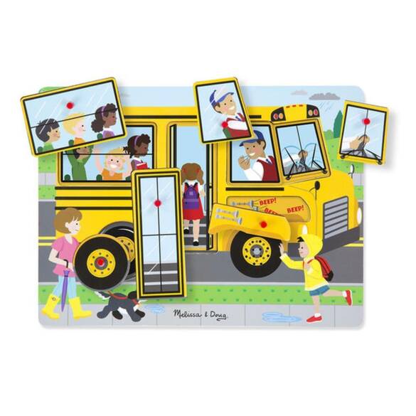 Sesli yapbozlar yeni serisiyle karşınızda! 6 adet yapboz parçası tablaya doğru bir şekilde yerleştirilir. Her bir parça kaldırıldığında İngilizce "The Wheels on the Bus" çocuk şarkısının ilgili kısmı dinlenir. Çocukların eşleştirme yeteneklerini geliştirir. Neden sonuç ilişkisini öğrenmelerini, İngilizce çocuk şarkılarını öğrenip birlikte söylemelerini sağlar. Bu üründe toksik olmayan boyalar kullanılmıştır, gerekli Avrupa Birliği ve ABD oyuncak güvenlik standartlarına uygundur.