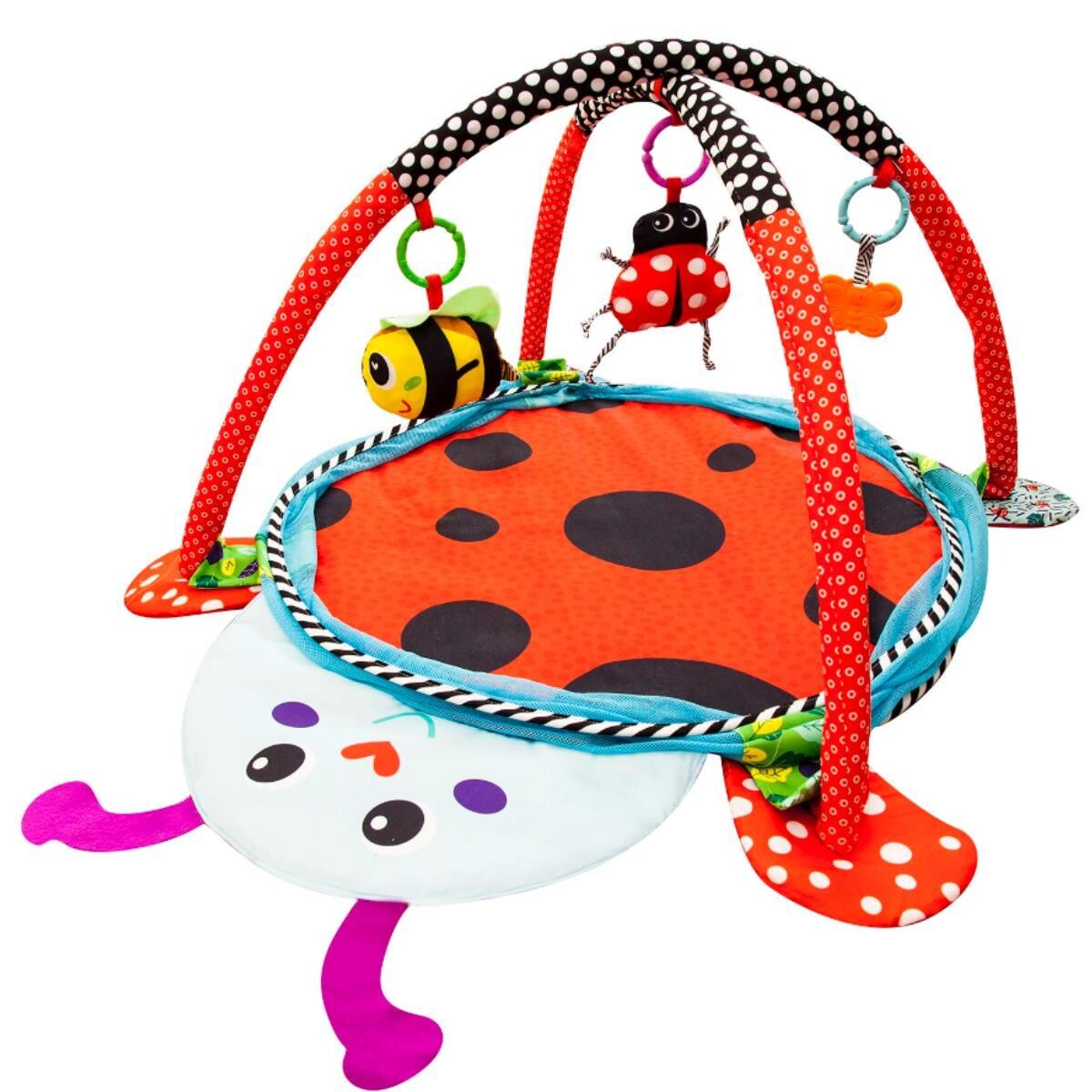 MOLIE Uğurböceği Temalı Top Havuzuna Dönüşen Aktivite Merkezi ve Oyun Halısı Yumuşak zemin sayesinde, bebeğinizi gönül rahatlığıyla yatırabilirsiniz. Halının üzerindeki çeşitli oyuncaklar ve figürler sevimli miniklerin görsel ve bilişsel zekasının gelişimine katkı sağlar. El ve göz koordinasyonunun gelişimini de destekler. Sahip olduğu özel yapısı sayesinde, bebeğinizin sağlığına zararlı hiçbir kimyasal madde barındırmaz. Kolay kurulumu ile dilediğiniz yere taşıyabilir ve bir kaç dakika içerisinde kullanıma hazır hale getirebilirsiniz. Top Havuzuna Dönüşen Aktiviteli Oyun Halısı; 4 adet askılı oyuncak ve 25 adet top kutuya dahildir. Askılı oyuncaklarda, 1 adet şekilli ayna, 1 adet çınçınlı oyuncak, 1 adet hışırtılı oyuncak ve 1 adet kelebek dişlik oyuncak vardır. Ürün Ölçüsü: 75 x 75 cm