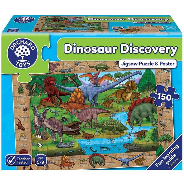 Çocuklar için özel tasarlanmış 150 parçadan oluşan dinozorların dünyasını öğreten yapboz seti. İngiltere’nin ünlü ORCHARD TOYS markasına ait ürünler büyük parçalı puzzle ve kutu oyunlardan oluşur. ORCHARD TOYS, İngiltere’de ve dünyada birçok ödül kazanmış olan bir markadır. Tüm ürünler kalın, parlak, dayanıklı ve geri dönüşümlü kartondan Avrupa güvenlik standartlarına uygun olarak İngiltere’de üretilmektedir. Okul öncesi ve okul çağındaki çocuklar için üretilen puzzle ve kutu oyunlar sayesinde çocuklar hem eğlenirler hem de öğrenirler. Orchard Toys, özellikle kaliteli eğitim veren okullar ve evde çocukları ile verimli zaman geçirmeyi amaçlayan anne babalar tarafından tercih edilmektedir. Kişisel ve sosyal becerileri geliştirir. Gözlem becerilerini teşvik eder.