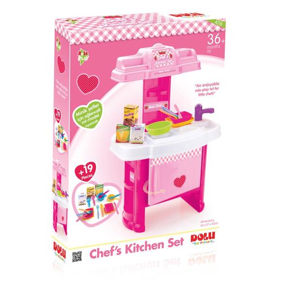 • Tabak, kaşık, çatal,tencere gibi toplam 18 parçadan oluşan bu mini mutfak, çocuğunuza şimdiden mutfak eğitimi alması vehayal gücünü, becerisini ve geliştirmesini sağlamaktadır.