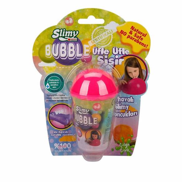 Slimy Bubble Çılgın & Cıvık Slime ile sınırsız yaratıcılık ve harika eğlence başlasın! Slimy Bubble slaymı üfle üfle şişir, havalı baloncuklar oluştur! Özel formüllü Slimy kopan, yırtılan, akan ve esneyen kıvamdaki yapısı sayesinde dilediğinizce şekil verebileceğiniz bir hamurdur. İçeriği toksik değildir, leke bırakmaz ve kolayca temizlenir. Turuncu, Yeşil, Pembe ve Mor olmak üzere 4 rengi mevcuttur, hangisini istediğinizi sipariş notunda belirtebilirsiniz. Stoklarımızda varsa istediğiniz renk, yoksa diğer renklerden bir tanesi gönderilecektir.