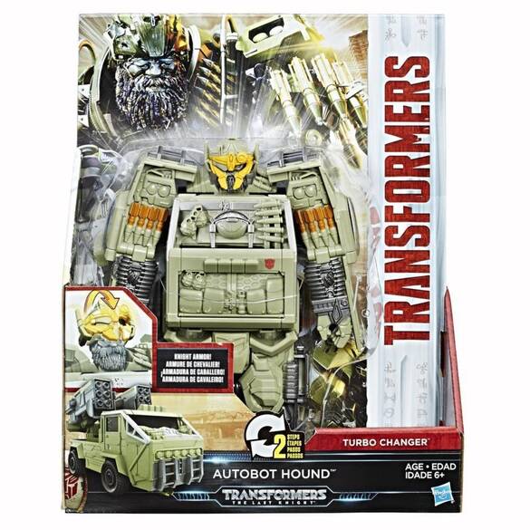 Transformers 5 - Son Şövalye filminin kahramanlarından Autobot Hound'un Turbo Changers Hızlı Dönüşen Figür'ünü 2 kolay adımda hızla araca ve robota dönüştürün! Figürün göğsündeki düğmeye basıldığında Şövalye Zırhı aktive oluyor ve şövalye kaskı Hound'un yüzünü kapatıyor.