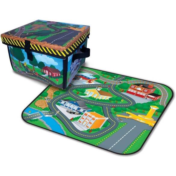 Zip-Bin - Small Town Storage Chest Playmat + 2 car